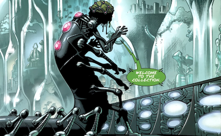 Ed arriviamo così ai giorni nostri. Con “New 52” MORRISON, in ACTION COMICS n. 8 ci riporta un Brainiac “Collezionista di Mondi” e dalle fattezze sempre più tenebrose.