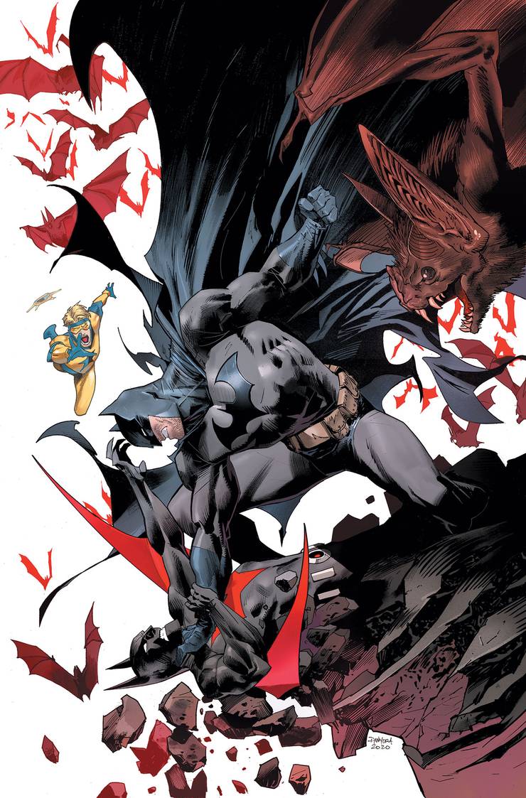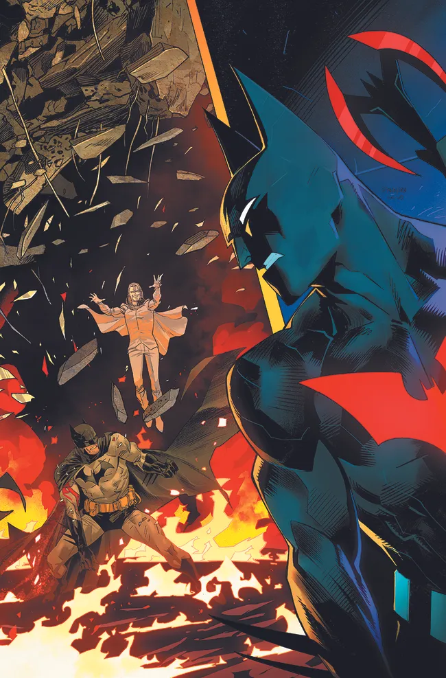 To safely return to his own timeline, Batman Beyond will have to defeat the villain Blanque without being seen by his mentor, the World's Greatest Detective Batman! Will Booster Gold help keep Batman Beyond hidden, or will time as we know it become completely undone? You do not want to miss this issue!