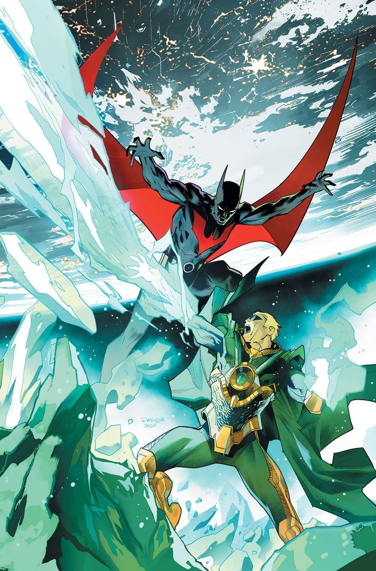 "First Contact" begins! Something is very, very wrong with Bruce Wayne, as he lashes out in anger and tries to kill Batman Beyond! Who else can save him but...Booster Gold?! The greatest hero history never knew is going to take Batman Beyond back in time to the Gotham of old, where Bruce Wayne is Batman—which means Batman and Batman Beyond will meet at last!