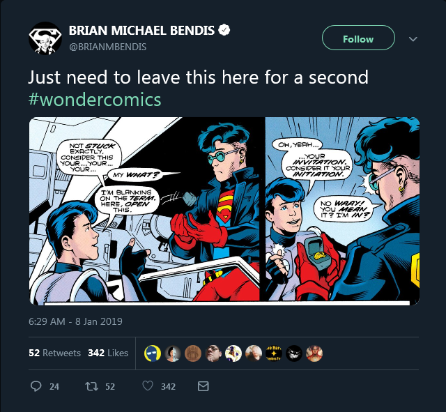 Tutta una vita ad aspettare certi momenti, con rumors che non fanno altro che alzare l'hype con gente che ti nomina autori come Hickman per poi avere... Brian P. Bendis, catapultato a random, "BREAKING NEWS: ora scrive per la DC", wow...
