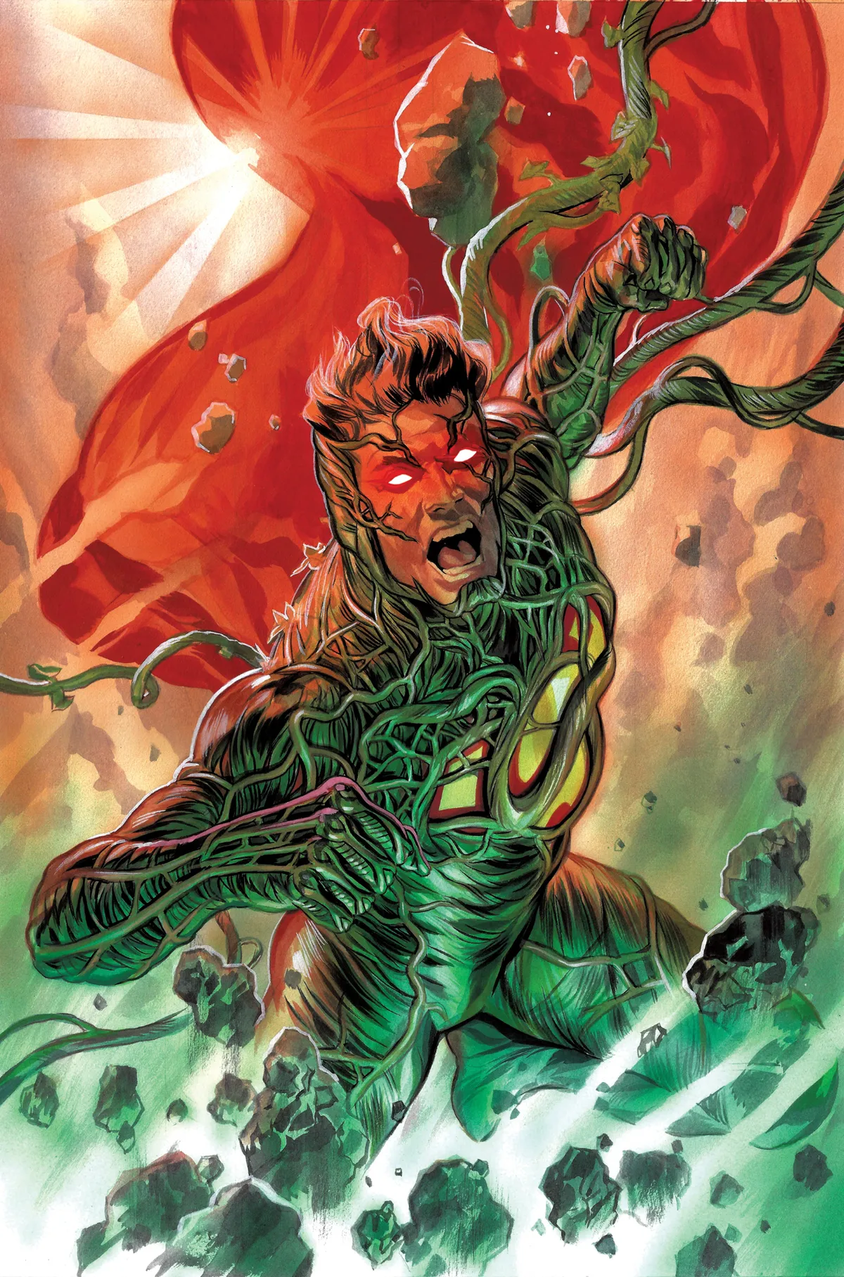 During the original Crisis on Infinite Earths, Swamp Thing encountered and formed a truce with the Great Darkness, but this ancient force has been awakened by Pariah and now its influence is felt across the Multiverse. Now the Avatar of the Green must work together with new allies to investigate how far it's spread and why it would work with Pariah. If they want to stop the Great Darkness from swallowing the Green, they need some extra help...ENTER: SUPER SWAMP THING.