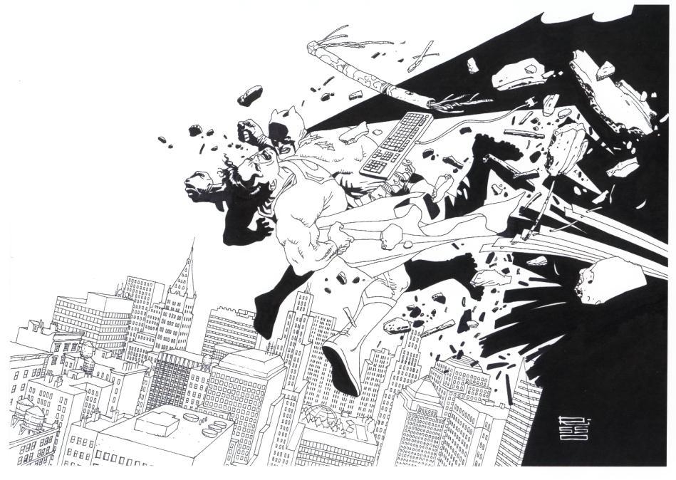 E' rapidissimo, ogni mese 24 pagine a matita e poi a china (un miracolo, per il mercato americano); inoltre non ha MAI sgarrato una consegna.